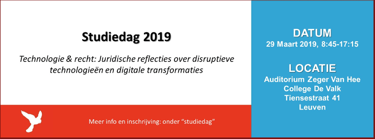 Ter gelegenheid van het nieuwe vak “Technologie en recht” aan de KU Leuven onder verantwoordelijkheid van professor Peggy Valcke, neemt Jura Falconis samen met professor Valcke de invloed van nieuwe technologie in verschillende rechtstakken onder de loep op de Jura Falconis Studiedag op vrijdag 29 maart 2019