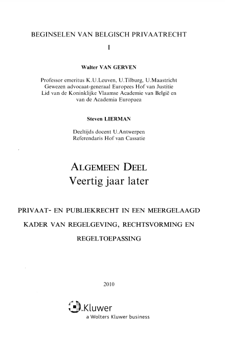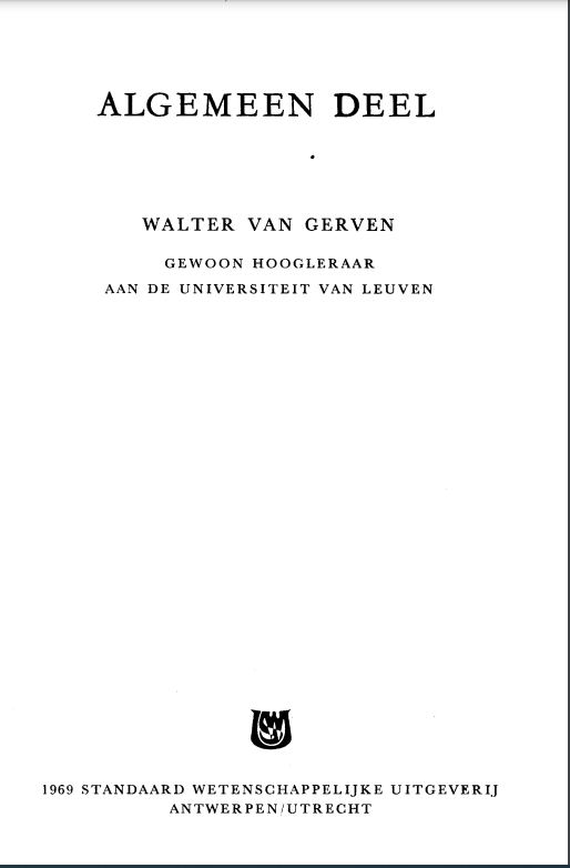 Nogmaals opgepast: hiermee heb ik niet willen zeggen dat aankomende juristen het geciteerde boek van W. van Gerven moeten lezen; daarvoor is een beter boek beschikbaar , namelijk het (tweede) Algemeen Deel [intranet KU Leuven] dat door Van Gerven recenter werd geschreven (met medewerking van S. Lierman), en dat mijns inziens op meesterlijke wijze een kijk bezorgt op het gecompliceerde, meergelaagde en op vele punten vernieuwde moderne recht.